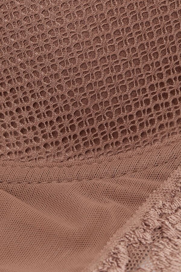 Sofia balconette-bh med lätt vadderade kupor och bekväma bygel som omfamnar och stöder bysten. Den är tillverkad i elegant och raffinerat spets som finns i tvåfärgade eller ton-i-ton-alternativ. Underbandet är fodrat med tyll för att säkerställa bättre passform. Axelbanden är justerbara i ryggen. Underbandet i större storlekar är bredare och en stödinsats är infogad i kuporna för att bättre omfamna och stödja bysten. Det är en design som ger optimalt stöd och framhäver dekolletaget, rundar formen för en feminin och sensuell stil.