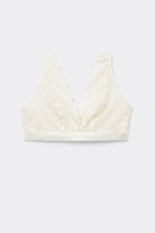 triangel-bh Lara, utan bygel och utan vaddering, tillverkad i sofistikerad och elegant stretchspets med ton-i-ton- eller kontrastfärgad blomsterbroderi, beroende på version. De stretchiga spetskuporna har ett mjukt tyllfoder. Sidorna och underbandet i mikrofiber ger stöd åt bysten. Underbandet är fodrat med tyll för bättre stöd. Axelbanden är justerbara i ryggen. I storlekarna 40c, 42b och 42c är axelbanden förstärkta med tyll för bättre stöd. Mycket mjuk och bekväm design, idealisk för dig som vill ha en naturlig men mycket feminin effekt.