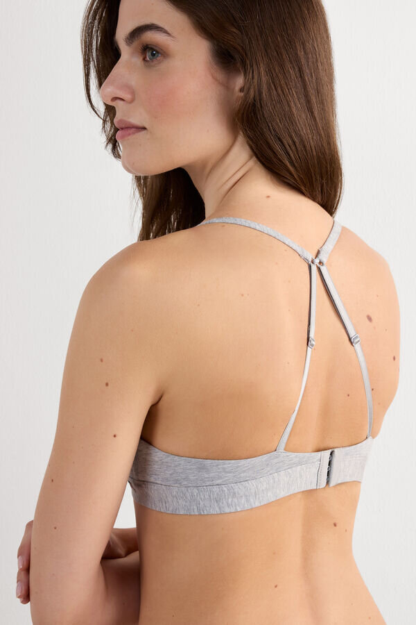 vår tiziana triangel-bh i bomull kombinerar diskret stil med genomtänkt design och är ett mångsidigt plagg som passar perfekt under olika typer av urringningar samtidigt som det bibehåller en raffinerad enkelhet. De rena linjerna och den mjuka finishen framhäver bomullens naturliga komfort och skapar ett vardagsplagg som är lika elegant som det ser ut. Den är tillverkad utan bygel och har lätt vadderade kupor som stöds av diskreta sidostag, vilket ger en perfekt balans mellan mjuk formning och en smidig silhuett. Bomullsfodret förbättrar andningsförmågan och garanterar komfort hela dagen, medan den subtila vadderingen ger en naturlig passform som passar perfekt under alla kläder. De justerbara axelbanden, designade med en dold krok, kan korsas i ryggen för att skapa en racerback-effekt eller anpassas för att diskret passa olika stilar, vilket ger flexibilitet som enkelt övergår från avslappnade till mer raffinerade looks. Med sina genomtänkta detaljer och tidlösa design är Tiziana triangel-bh ett enkelt val för dem som uppskattar komfort, mångsidighet och subtil elegans i sina underkläder.