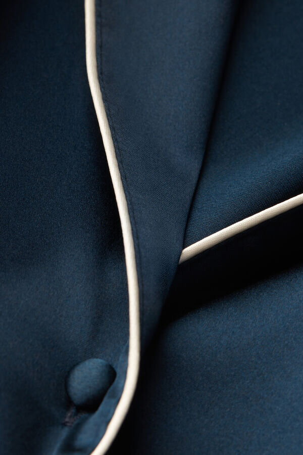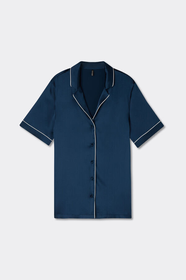 kortärmad skjorta i lätt stretchig silkesatin med herrskärning och kantband i ton-i-ton eller kontrasterande färg, beroende på vald färg. elegant och bekväm, perfekt för att skapa en raffinerad kvällslook, men kan också bäras som ytterplagg till byxor eller jeans.