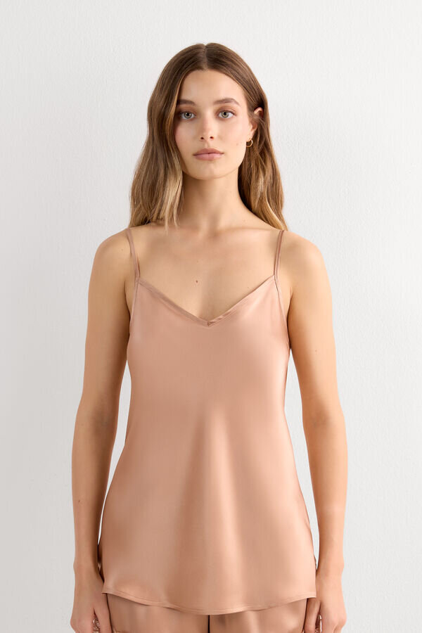 top i silkesatin med V-ringning fram och bak. justerbara tunna axelband.