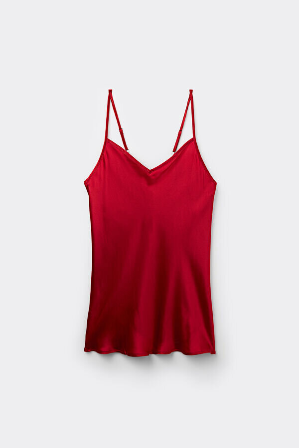 top i silkesatin med V-ringning fram och bak. justerbara tunna axelband.
