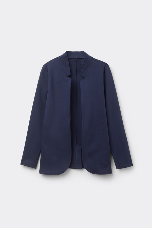 långärmad kofta med jackeffekt i tung bomullsinterlock.