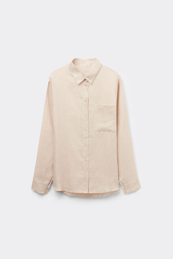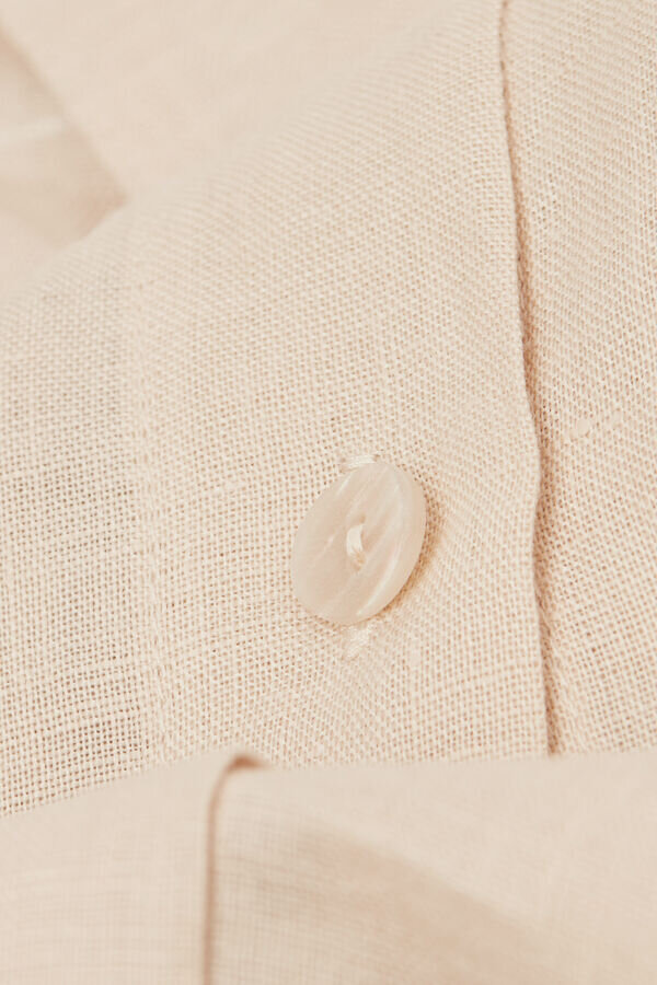 skjorta i linnetyg med framficka och manschetter på ärmarna.