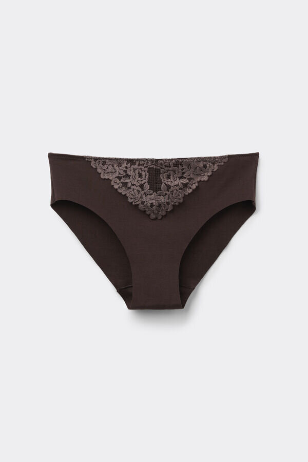 våra bomullstrosor med blommönster från intimissimi kombinerar vardaglig komfort med feminin charm. dessa sömlösa bomullstrosor är tillverkade av stretchbomull och ger en slät, osynlig finish under åtsittande kläder. de är designade utan bensömmar, vilket gör att de inte klämmer eller syns, vilket gör dem perfekta för åtsittande kläder. De fina spetsdetaljerna framtill ger en romantisk touch och lyfter den enkla designen med en hint av elegans. Beroende på vilket färgval du gör finns spetsen i antingen kontrastfärg eller ton-i-ton, så att du kan välja ett par som passar dina preferenser. Den 100 % bomullsförstärkta grenen förbättrar andningsförmågan och fräschören, vilket garanterar komfort hela dagen. Dessa bomullstrosor med blommönster är perfekta för kvinnor som söker ett mångsidigt, snyggt och bekvämt alternativ för vardagsbruk. Den sömlösa designen och de vackra spetsdetaljerna gör dem till ett praktiskt men elegant tillskott till alla garderober.