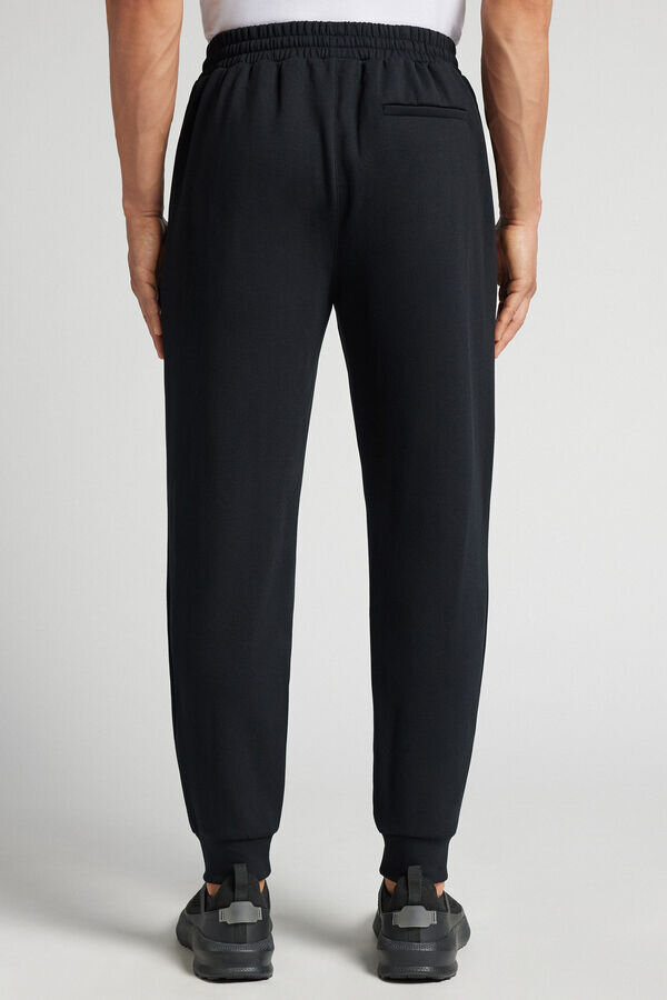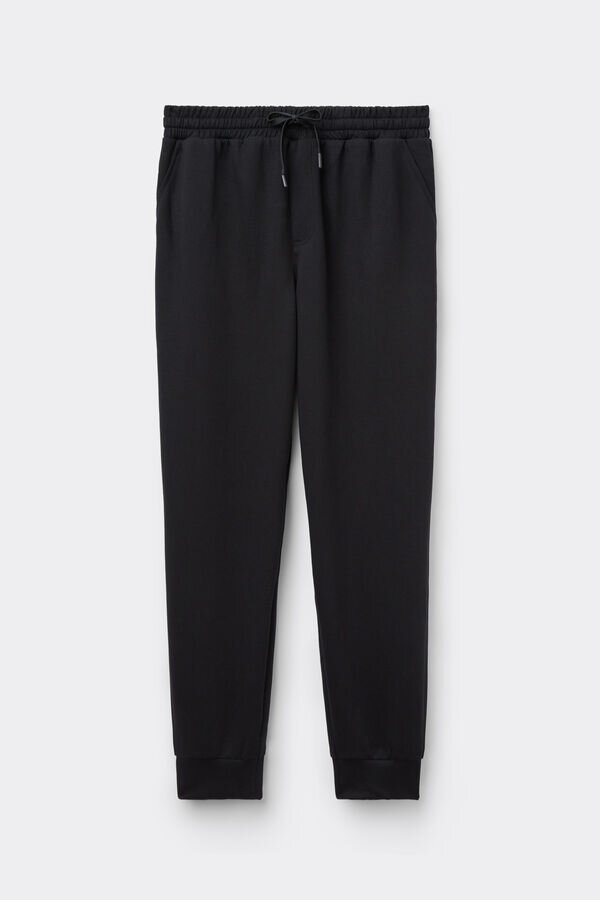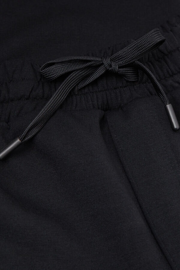 långa byxor i mysigt, mjukt tyg. bekväma och funktionella, perfekta att ha på sig på fritiden eller när du kopplar av. Modellen är 185 cm lång och bär storlek L.
