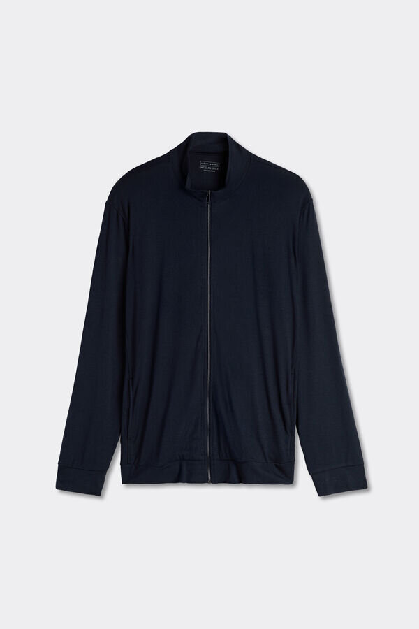 långärmad sweatshirt för herr i silke och modal med dragkedja fram och fickor.