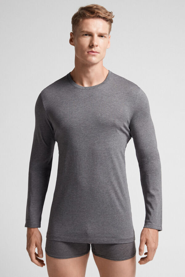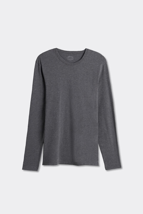 långärmad tröja med rund hals i 100 % högkvalitativ bomull. fibrerna är av högsta kvalitet, otroligt mjuka och andas bra, och har optimal elasticitet trots att de inte innehåller elastan. tygets struktur garanterar utmärkt hållbarhet vid tvätt. en enkel och mysig tröja, perfekt att bära vid alla tillfällen, antingen som underkläder eller på egen hand.