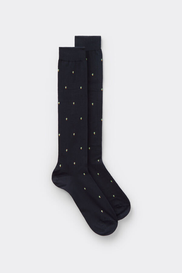 knästrumpor för herr i bomull med olika mönster.