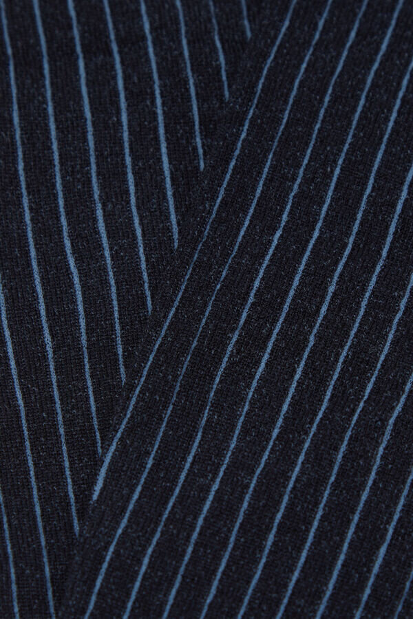 långa strumpor i ribbad merceriserad lisle-bomull med blå vertikala ränder. särskilt lätt, andningsbart och fräscht garn. klassisk strumpmodell.